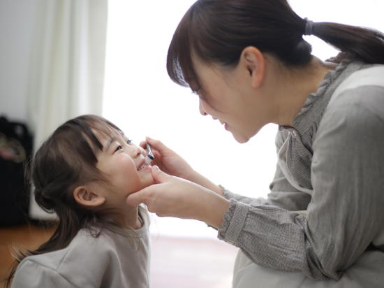 子どもの歯は大人の歯より弱く虫歯の進行も早いことが特徴です。乳歯の虫歯を放っておくと永久歯が虫歯になったり正常な位置に生えてこないなど、将来的に悪影響を及ぼすことがあります。まずは練習から始めるなど、お子様一人一人にあったペースにあわせて治療を進めていきます。